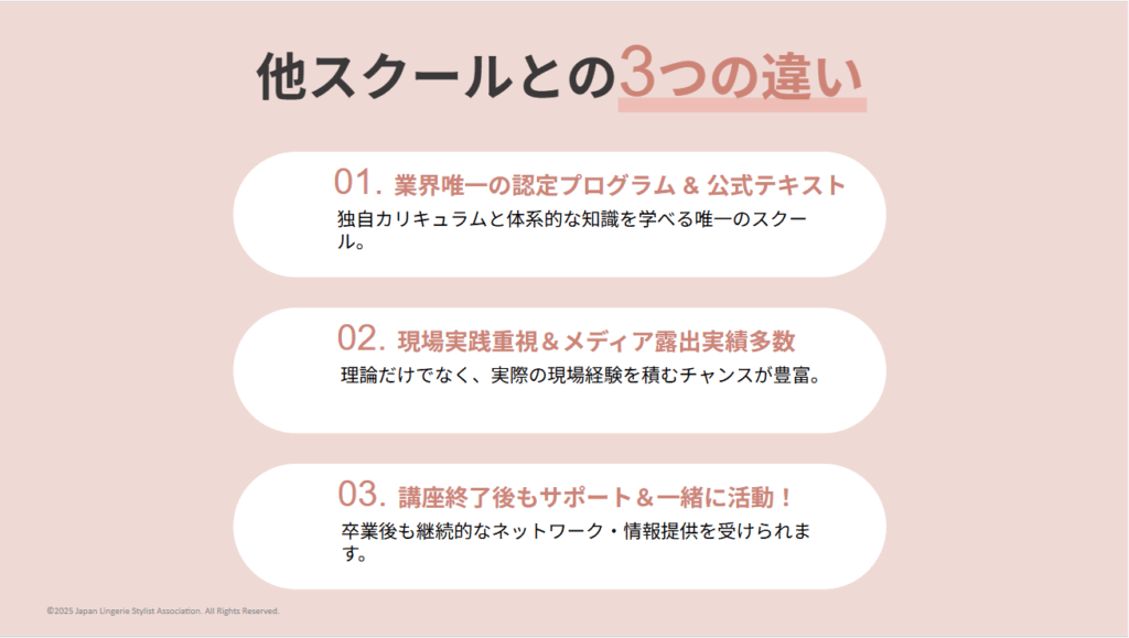 そんな女性たちを応援する、実践型のランジェリーの専門家養成プログラムです。
